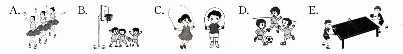 六、这所小学的学生们课余生活丰富多彩。请给下列句子选择对应的图片。