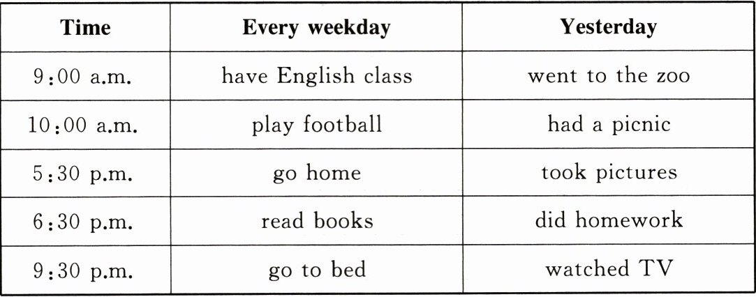 )1. Ella had English class at nine o'clock yesterday morning.(