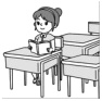 B. She is in the classroom.