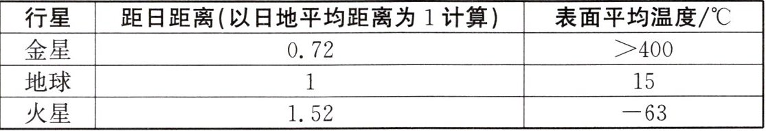 (填“远”“近”或“适中”)。【思考 2】与金星、火星相比,地球表面的平均温度比较