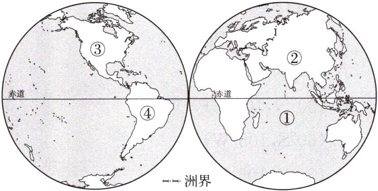 4. 右图中①②③④均是位于大西洋两岸的大洲,则②大洲是(