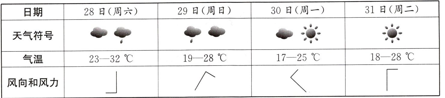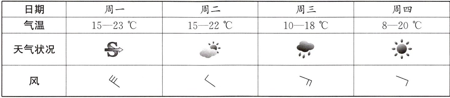 )。A.周一天气较好,适宜郊游