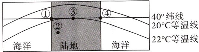 由于海陆热力性质的差异,同一纬度、不同季节海洋和陆地的气温是不一样的。读某区域等温线分布示意图,完成第9~10题。