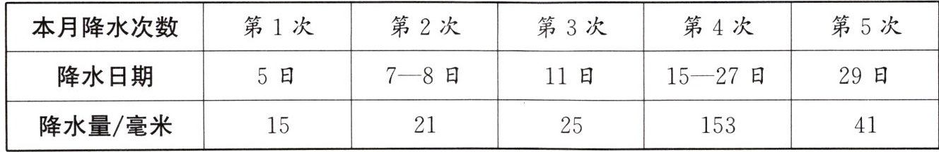 某中学地理兴趣小组观测当地某月全部5次降水过程,并记录了降水量(见下表)。当地年平均降水量约为1100毫米。据此完成第1~2题。