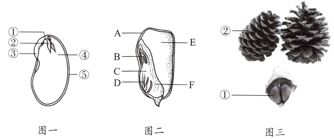 (5)观察松球果,如图三所示,松球果呈塔形,成熟后种鳞开裂,从外面可以看到其内含有[ ]______。因此,松的种子外面没有______包被,是裸露的。