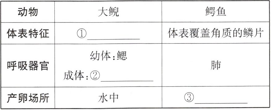 12. 大鲵和鳄鱼都是既能生活在水中,又能生活在陆地上的动物。请回答下列问题。