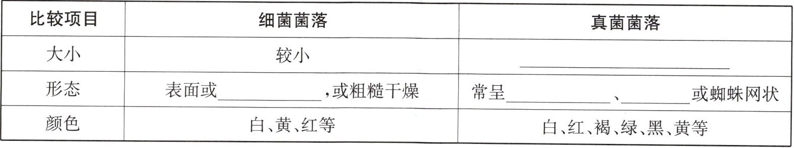 2.比细菌菌落大几倍到几十倍 光滑黏稠 绒毛状 絮状