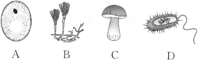 1. 下图为四种微生物的结构示意图,其中不属于真菌的是( )