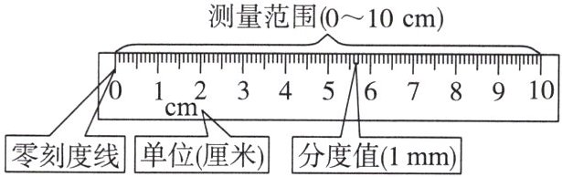 (3) 分度值:相邻两刻度线之间的长度,它反映了刻度尺的