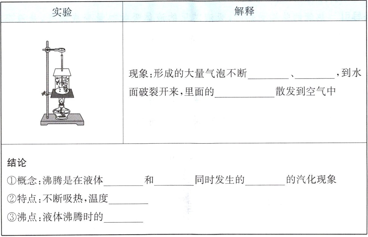 上升 变大 水蒸气 内部 表面 剧烈 不变 温度