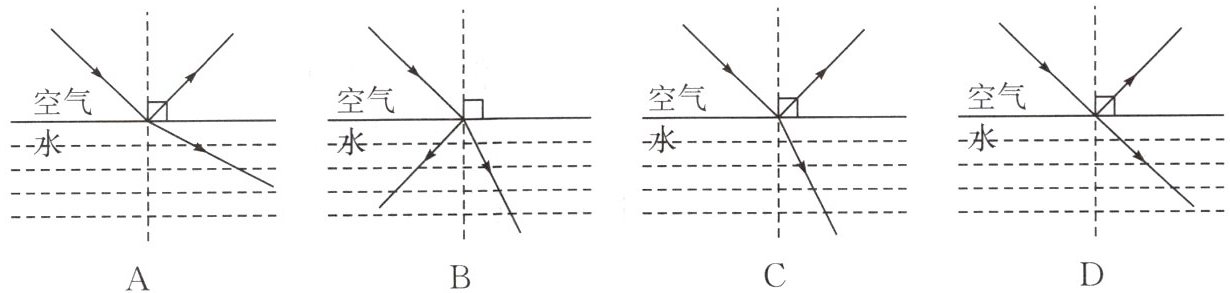 1. 下列能够正确表示光从空气斜射到水中的光路的是(