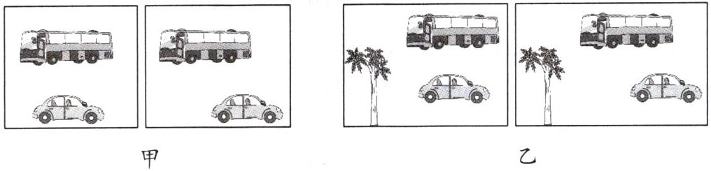 3. 下图是小英在甲、乙两个不同地点,分别连续拍摄的两组照片,观察甲、乙两组照片可知,能判断是大车在运动还是小车在运动的是图