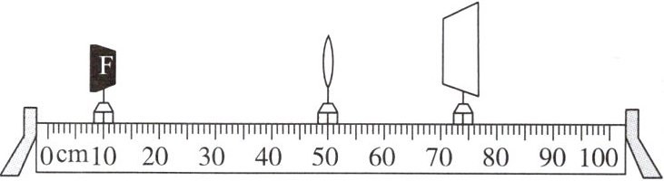 (3) 小潘将发光物体放在10 cm刻度线处,移动光屏到如图所示的位置,光屏上恰好呈现一清晰的像,该像的性质是倒立、