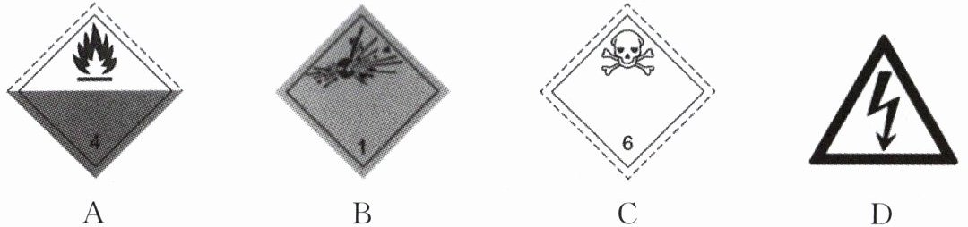 10. (2023·山东东营中考)学校化学实验室易燃品、毒害品储存柜上不应该张贴的标志是( )。