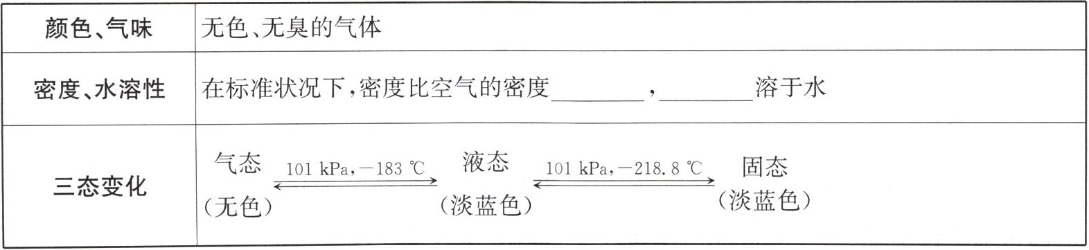 氧气是人类生命活动中必不可少的气体,氧气的物理性质怎样呢?阅读教材中有关内容后填空。