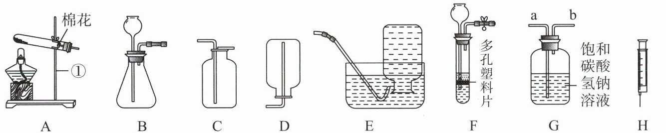 (3)F 装置相比 B 装置制取二氧化碳的优点是 ,制得的$ CO_2$气体中往往含有 HCl 等杂质,可以选用 G 装置除去 HCl,除杂时气体应从 (填“a”或“b”)端通入。(已知$:HCl+NaHCO_3= NaCl+H_2O+CO_2↑)$