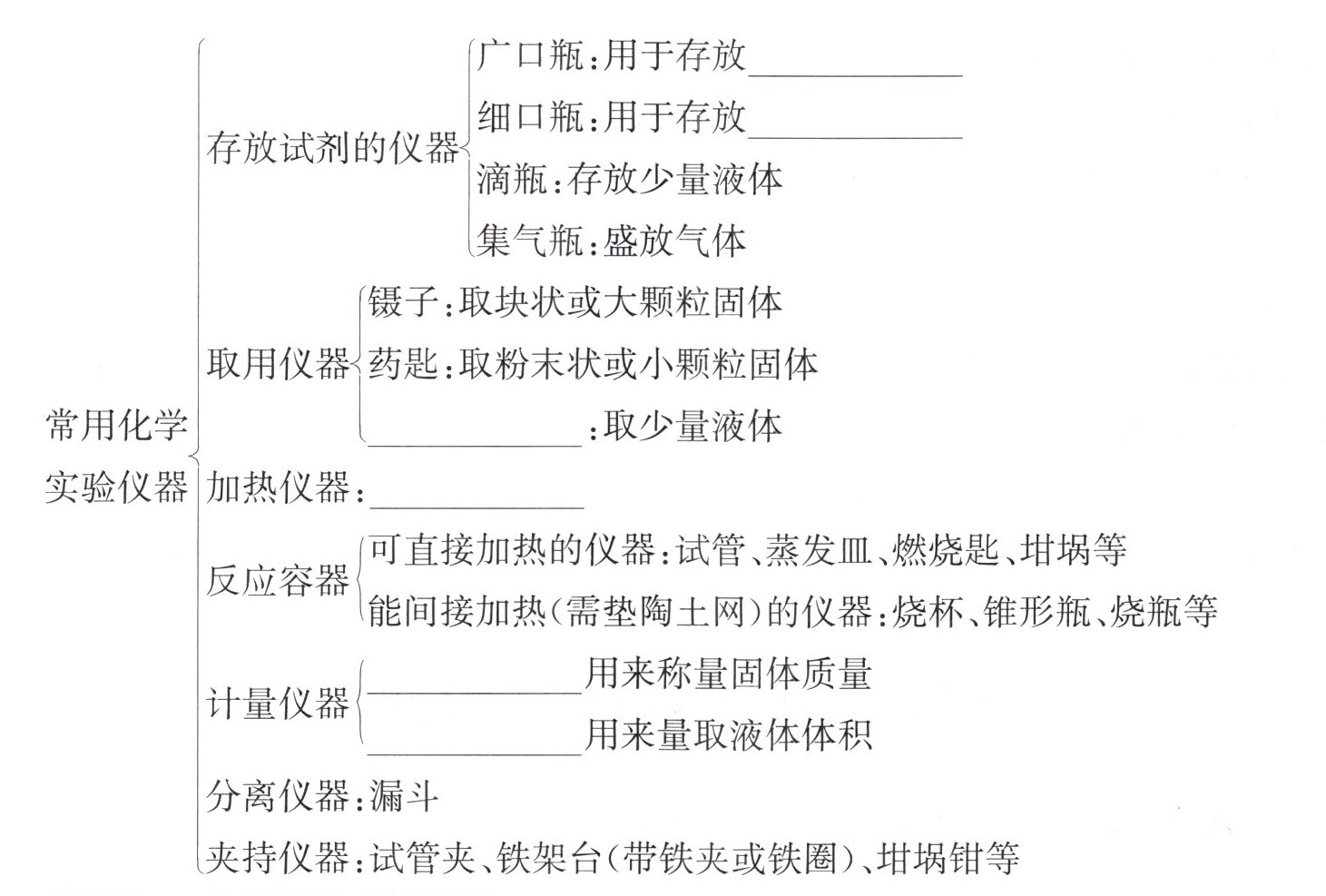 固体 液体 胶头滴管 酒精灯 托盘天平 量筒