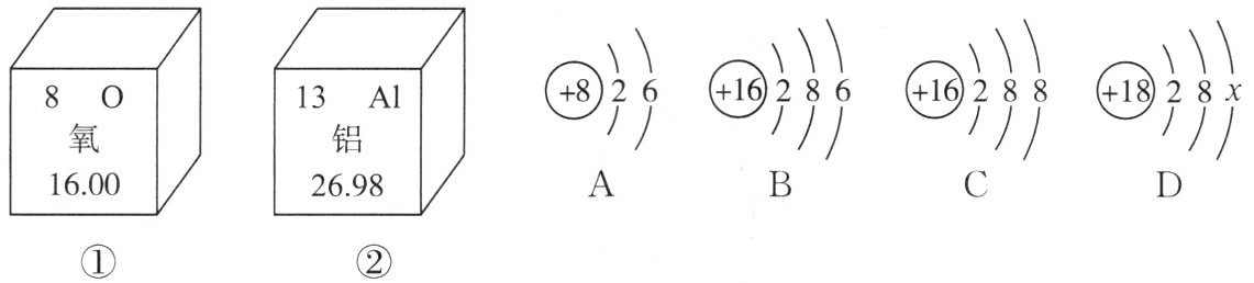 (填“原子”“阴离子”或“阳离子”);若 D 表示的是原子,则 x = 8