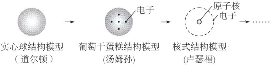 人类不同阶段认识原子的模型示意图如下,其中卢瑟福的“α粒子轰击金箔”实验对认识原子起到了关键作用。用一束带正电荷的、质量比电子大得多的高速运动的α粒子轰击金箔时,发现:大多数α粒子穿透金箔而不改变原来的运动方向,一小部分α粒子改变了原来的运动方向,有极少数α粒子被反弹了回来。结合你所学的知识判断下列有关说法错误的是______(填字母)。