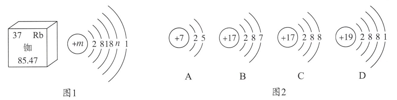 近年来,我国航空航天事业成果显著,“北斗三号”导航卫星搭载了精密计时的铷(Rb)原子钟。图 1 为铷元素在元素周期表中的信息和铷的原子结构示意图。回答下列问题。