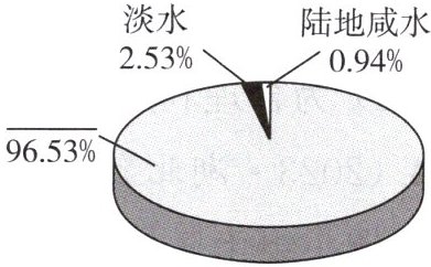 (2)地球咸水、淡水的储量比。(如右图所示)