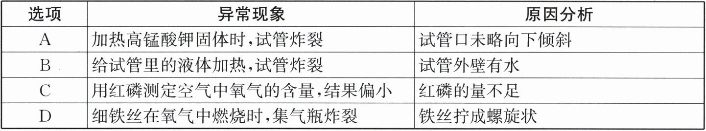 |B|给试管里的液体加热,试管炸裂|试管外壁有水|
