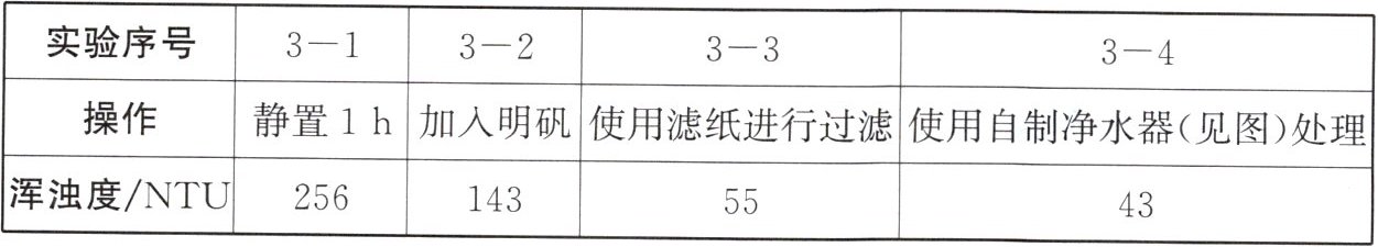 (5)初始水样的浑浊度相同,实验 3-4 比 3-3 中净化后的水样浑浊度低