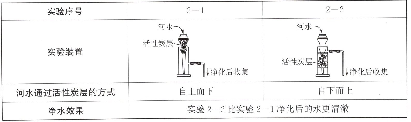 在河水流量、活性炭用量等其他条件相同时,水自下而上比自上而下通过活性炭层净水效果好