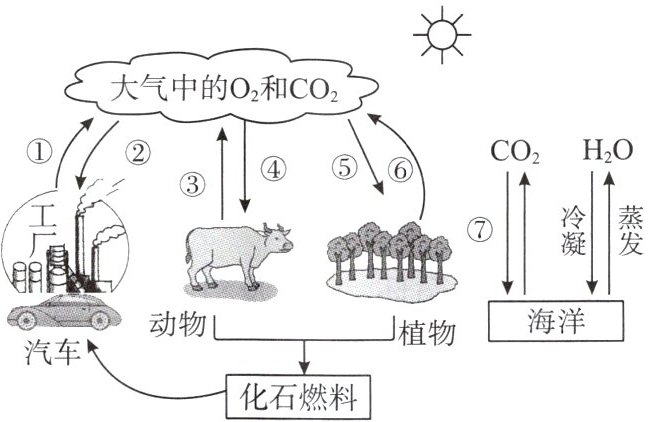 6. (2023·山东泰安中考)“氧循环”“碳循环”“水循环”是自然界存在的三大重要循环。