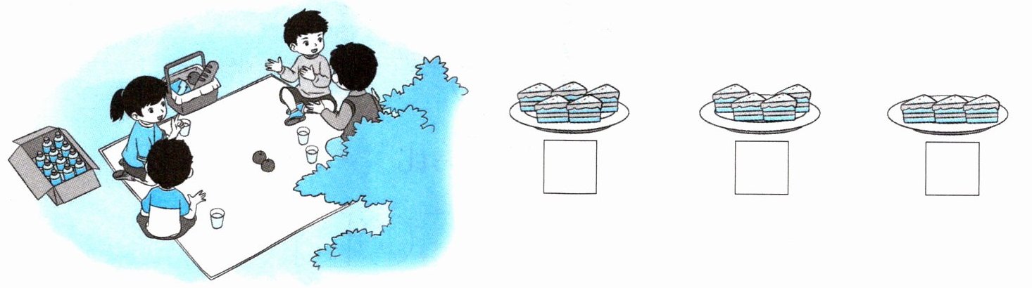 2. 每人吃 1 块蛋糕(gāo),哪一盘正合适?在