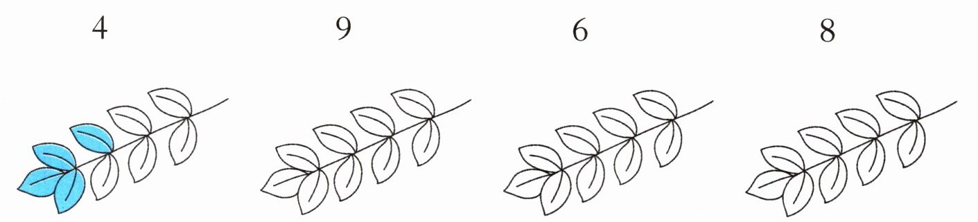 1. 照样子,看数涂树叶。