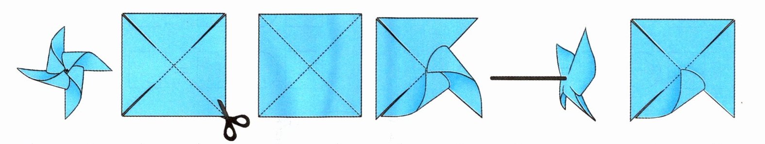 6. 把下面做纸风车的步骤按发生的先后顺序编号。