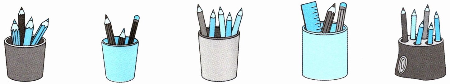 (1)从右边数,第 1 个笔筒里有( )支笔。