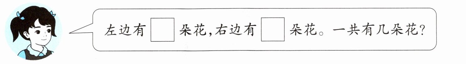 左边有$□$朵花,右边有$□$朵花。一共有几朵花?