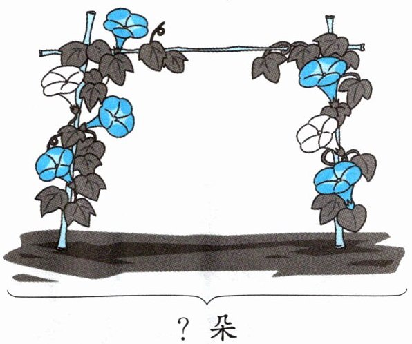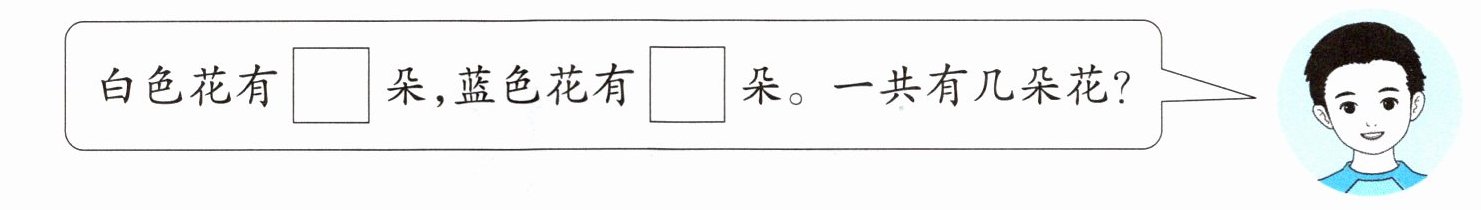白色花有$□$朵,蓝色花有$□$朵。一共有几朵花?