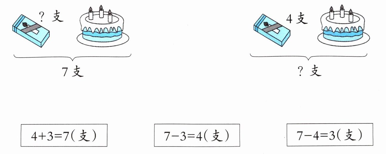|$4 + 3 = 7$(支)|$7 - 3 = 4$(支)|