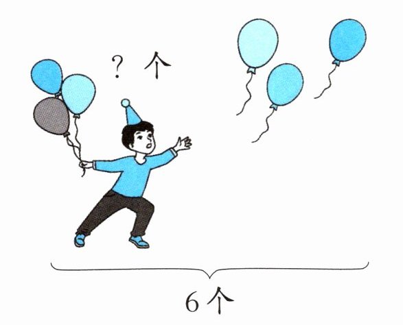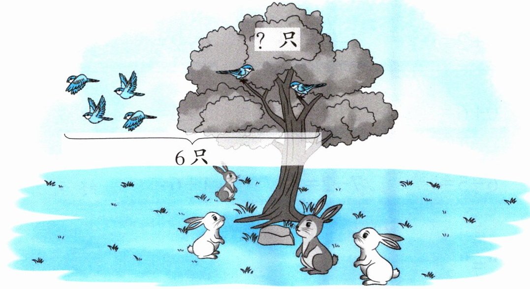 下图中的数学问题可以用“$6 - 4 = 2$”来解答,算式中的“4”表示什么?