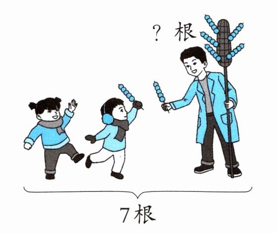 问4条和3条合起来是几条?—— —— —— —— ? —— —— ——