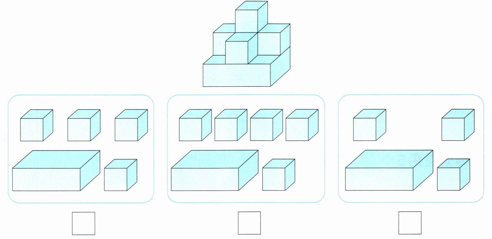 6. 哪些积木能搭出下面图形?在 $□$ 里画“√”。