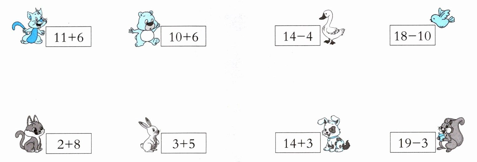 将$11 + 6$与$14 + 3$相连;$10 + 6$与$19 - 3$相连;$14 - 4$与$2 + 8$相连;$18 - 10$与$3 + 5$相连。