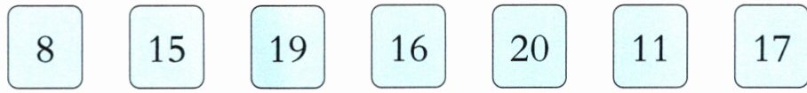 $\begin{array}{ccccccc}\boxed{8} & \boxed{15} & \boxed{19} & \boxed{16} & \boxed{20} & \boxed{11} & \boxed{17}\end{array} $