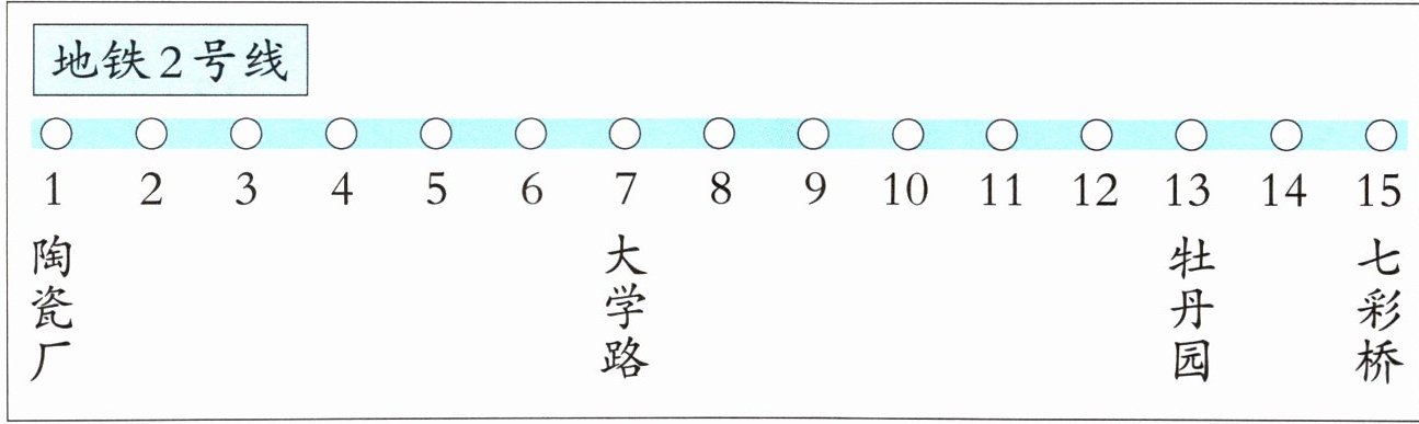 (2) 王阿姨每天上班从大学路站上车,到牡丹园站下车,要坐( )站。