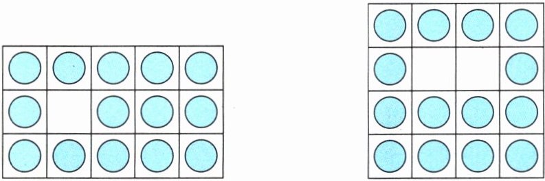 (比较方法不唯一) 左边:5×3−1=14(个) 右边:4×4−2=14(个) 14=14 一样多。