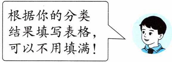 (3) 小元想把这些汉字卡片分为两类,他应该怎么分?把分类的结果记录在下表中。