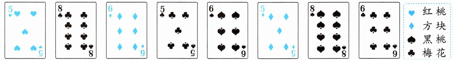(1)花色 四 花色 红桃 方块 黑桃 梅花 张数 1 2 2 3