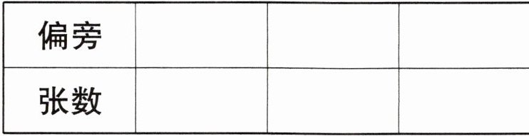 (1)偏旁 氵 亻 艹 张数 7 5 4