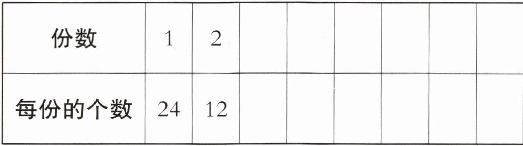 |每份的个数|24|12|8|6|4|3|2|1|