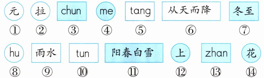 长方形词语:⑥⑦⑨⑪