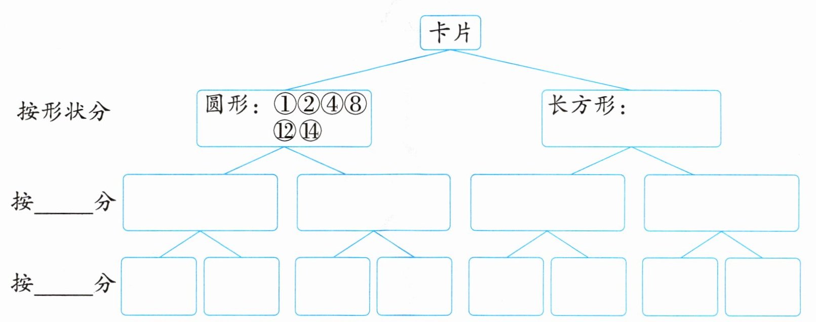 1. 把下面的卡片分类,并将卡片的编号填在合适的位置。