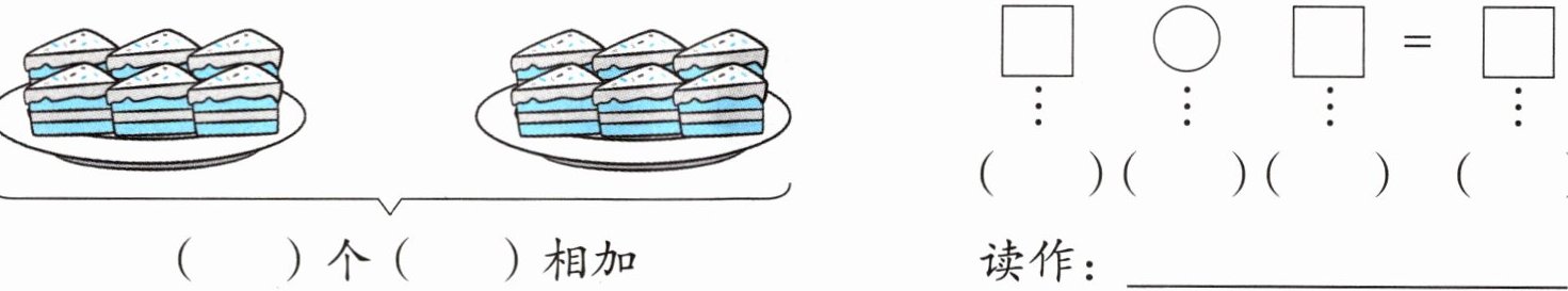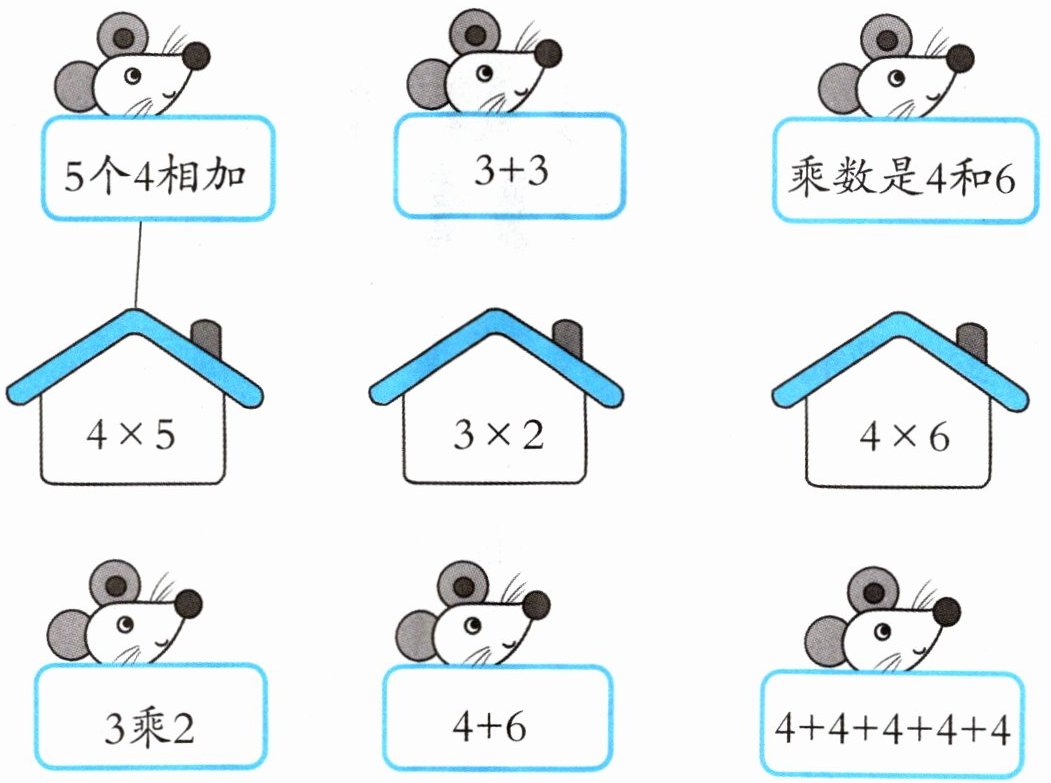 2. 看图填一填,列乘法算式,并写出乘法算式各部分的名称。